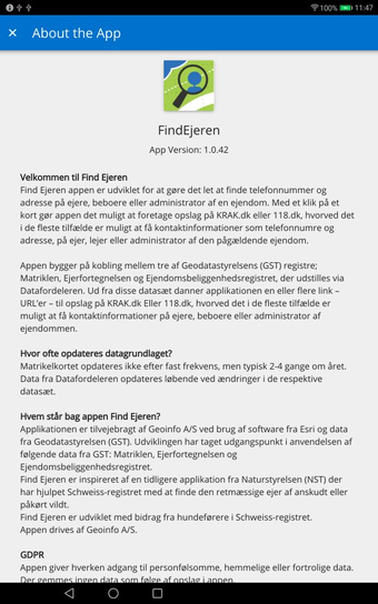 无论您是在自然环境中还是在城市地区旅行,您都可能遇到需要与地块或房产的所有者、居民或经理联系的情况。使用Find Ejeren应用程序,您可以在需要行动的情况下立即采取行动。